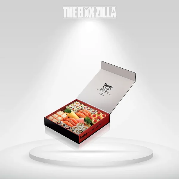 We design premium and luxury custom design sushi boxes for your Japanese food items with required durability and astonishing printing touch. By using our boxes, you can not only make a lasting impression on customers but also enhance your takeout services. You can design your sushi packaging boxes with compartments or inserts to add extra care. We allow you to manufacture your desired packaging boxes in any shape, style, size, and printing for your delicious Japanese fast food items. Call us now for an instant price quote!